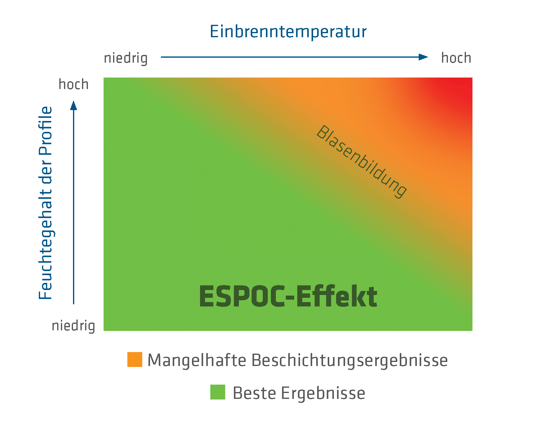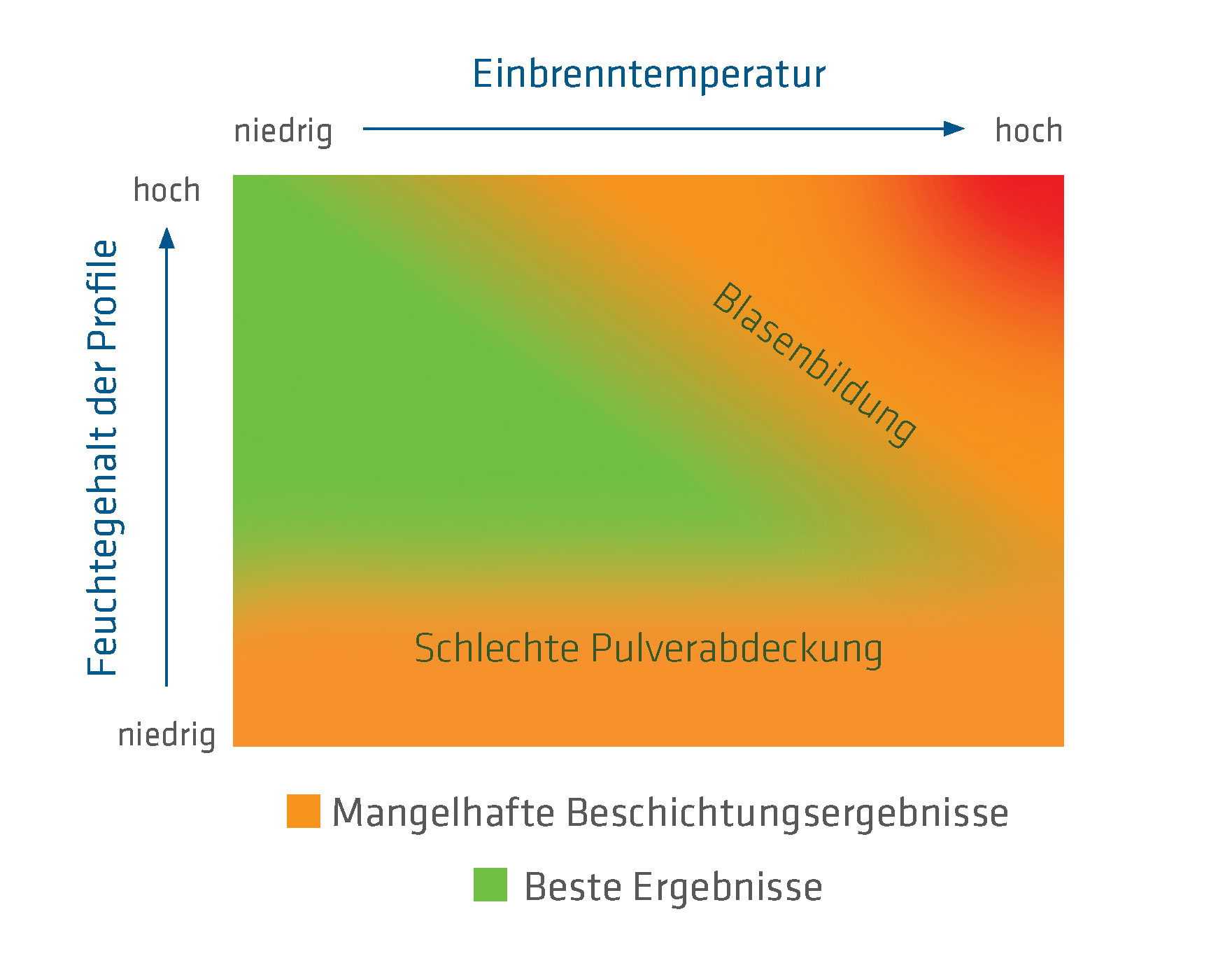 Die Oberfläche wird durch ein innovatives Verfahren elektrisch leitfähig gemacht. Die elektrostatisch aufgeladenen Pulverpartikel werden von der geerdeten Oberfläche des Isolierprofils angezogen, ähnlich wie es bei der Anziehung von leitfähigen Metallen der Fall ist. Dadurch lassen sich sowohl Aluminium-Kunststoff-Verbundprofile als auch solitäre PA-Profile optimal beschichten, was in beiden Fällen zu einer hervorragenden Optik führt.