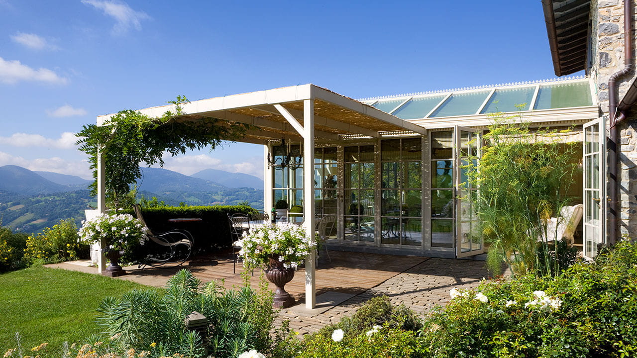 In diesem außergewöhnlichen Wintergarten eines italienischen Landhauses lässt sich das Leben mit allen Sinnen genießen. insulbar® Isolierprofile sind Teil dieses harmonischen Ensembles der Keller minimal windows.