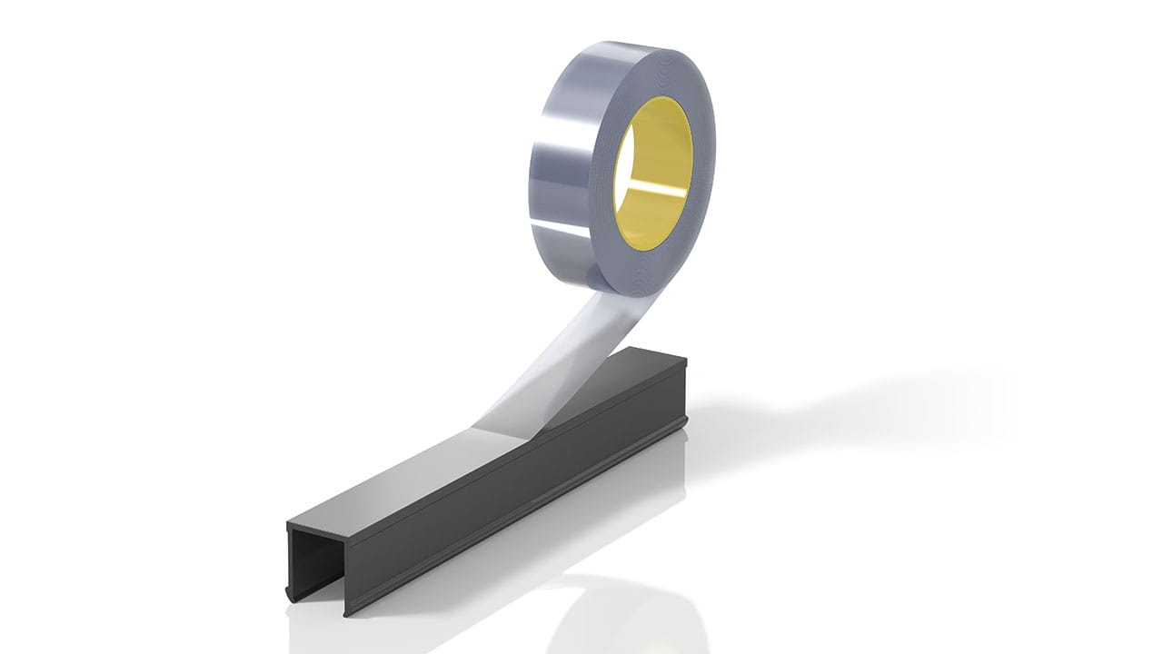 Previously defined sections of the insulbar® profile have the robust protective film applied to them immediately after being extruded. Following transportation, processing and final assembly, the adhesive film can be removed simply by being pulled off, and leaves no residues. The visual appearance of the finished system thus remains impeccable.