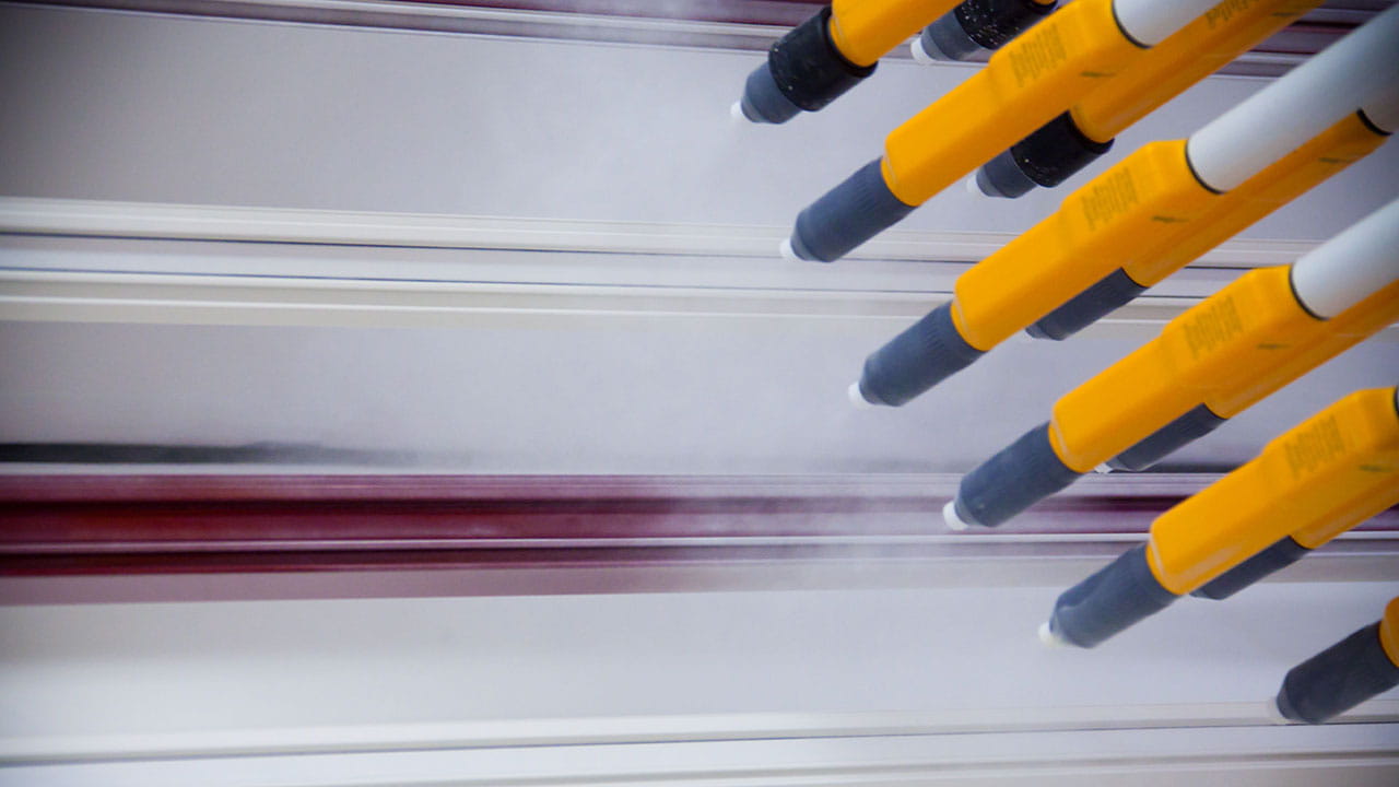 Pour un thermolaquage parfait des profilés de fenêtres, portes et façades, on utilise des peintures en poudre composées de très fines particules. Pendant l'application, cette peinture en poudre, chargée électrostatiquement, reste fixée sur les surfaces de charges électriques opposées et forme une couche de laque après la cuisson. Cependant, le traitement de surface uniforme de matériaux à conductibilités différentes est un véritable défi lorsque, par exemple, les coquilles extérieures et intérieures d'un cadre métallique sont assemblées avec une barrette en polyamide.