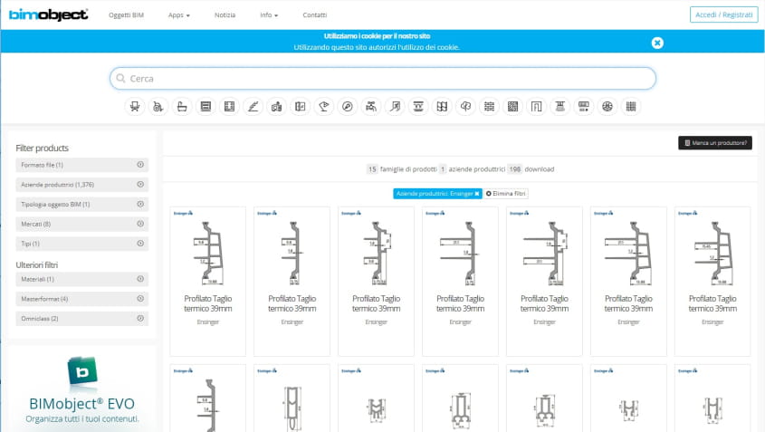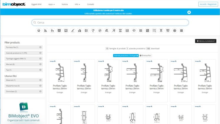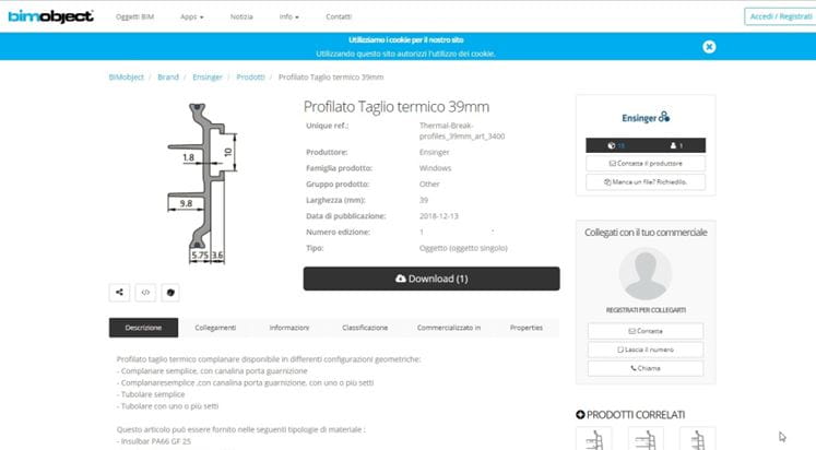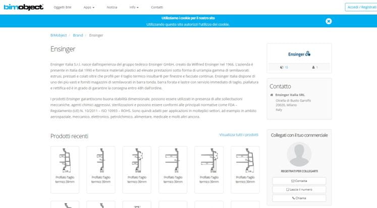 Per l’inserimento nella piattaforma, Ensinger ha lavorato principalmente in outsourcing con gli esperti di BIM Objects creando le schede necessarie sulla base delle informazioni e dei dati forniti dall’ufficio tecnico della società che ha curato tutto il processo di pubblicazione.